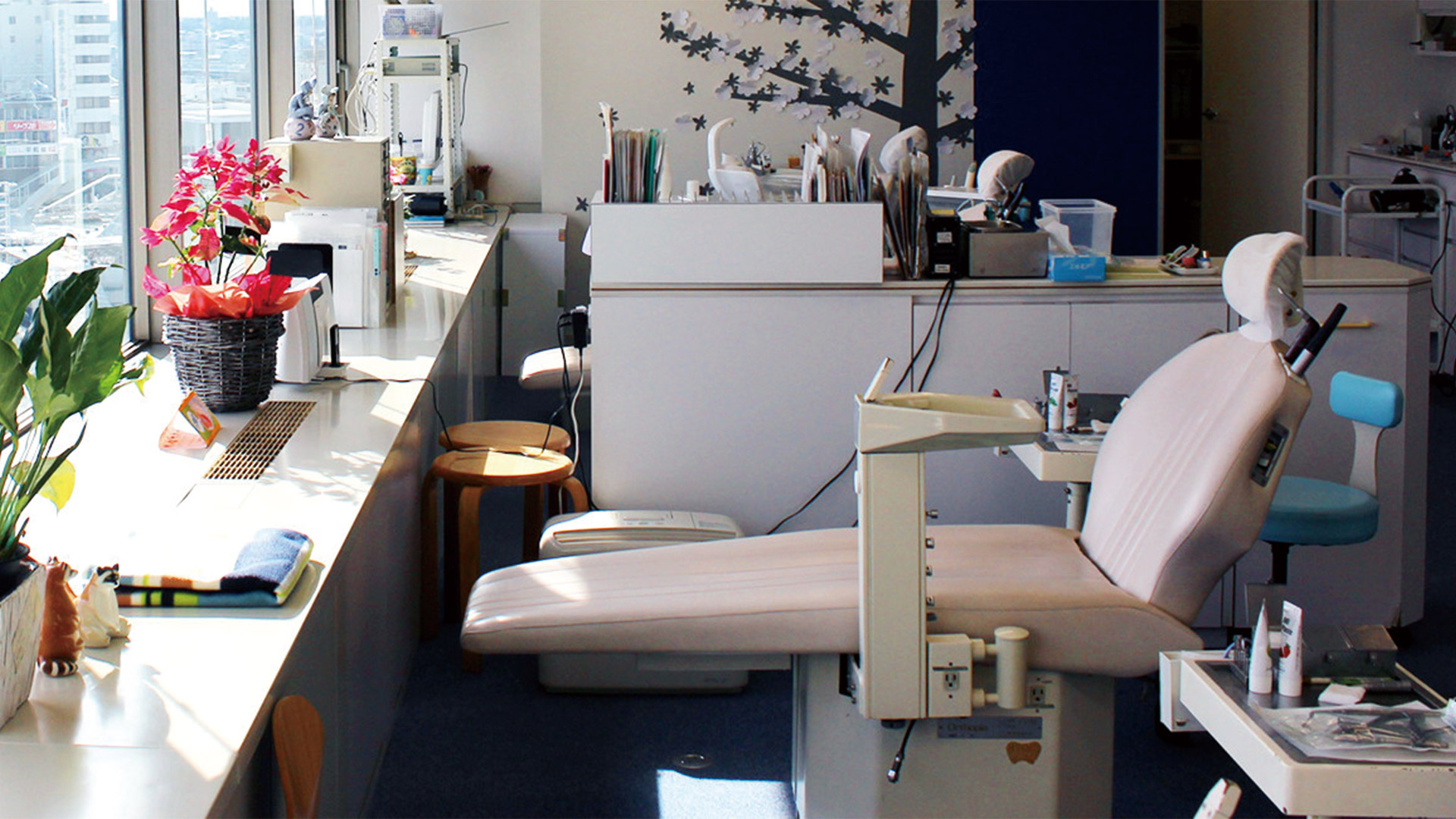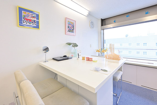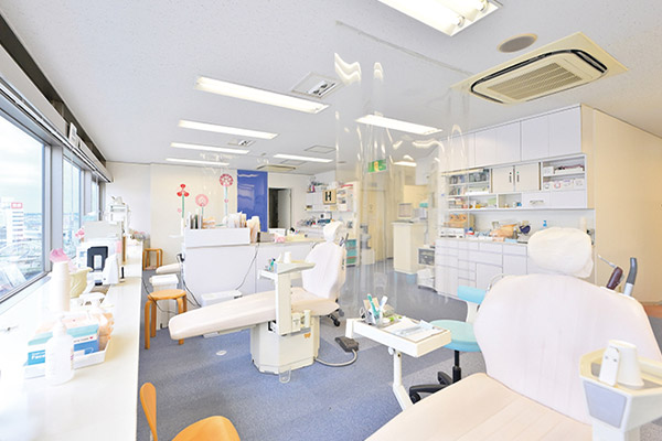 また、受付にパーティションを設置したり、手指のアルコール除菌を行ったりと、新型コロナウイルス感染症対策にもしっかりと取り組んでいます。開放的なつくりになっている診療室内も、透明なパーティションをぶら下げるなどの対策を行いました。